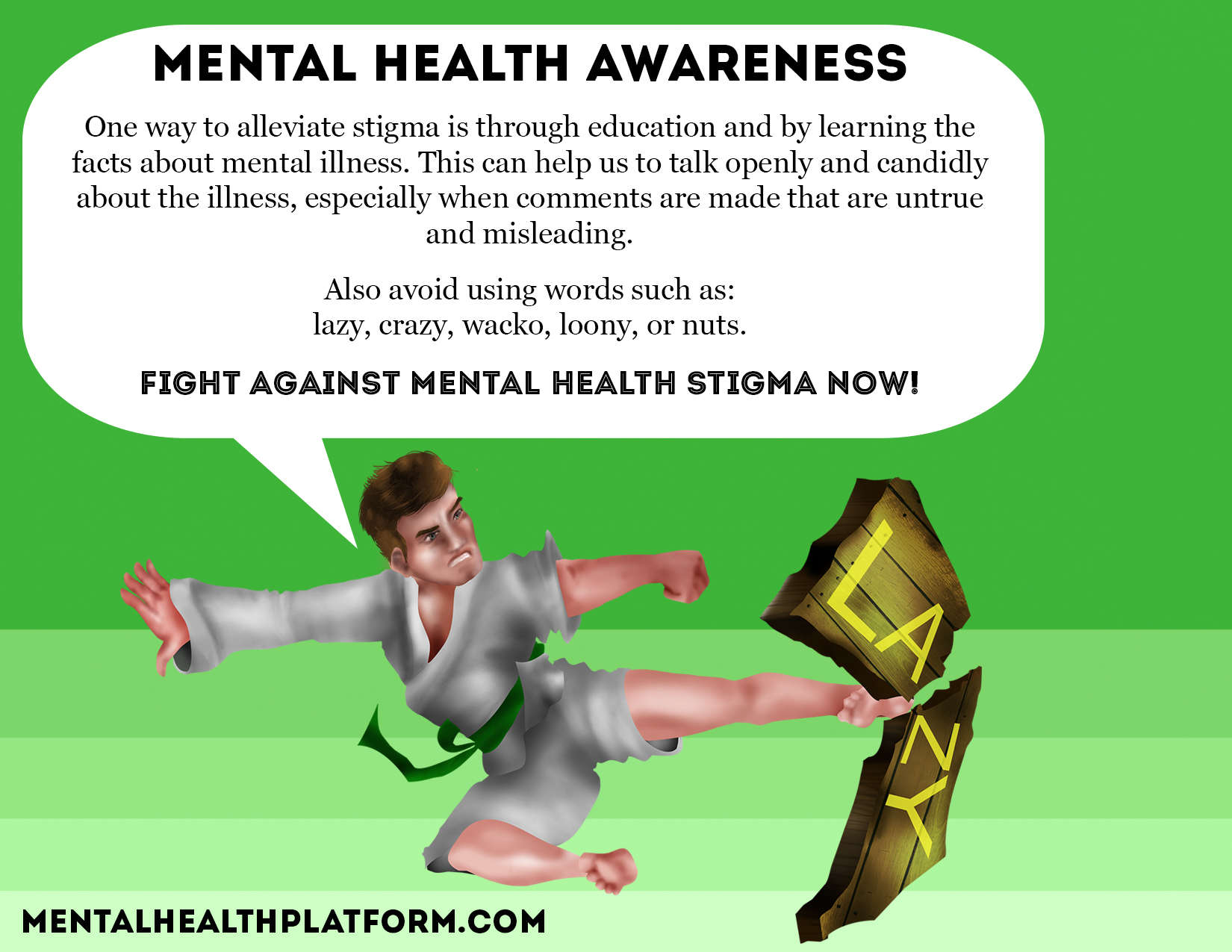 Posted on May 27, 2014 by Mental Perspective Reply Mental Health Awareness Month Fight Against Mental Health Stigma Now! One way to alleviate stigma is through education and by learning the facts about mental illness. Share this: Click to share on X (Opens in new window) X Click to share on Facebook (Opens in new window) Facebook Like Loading... Related
