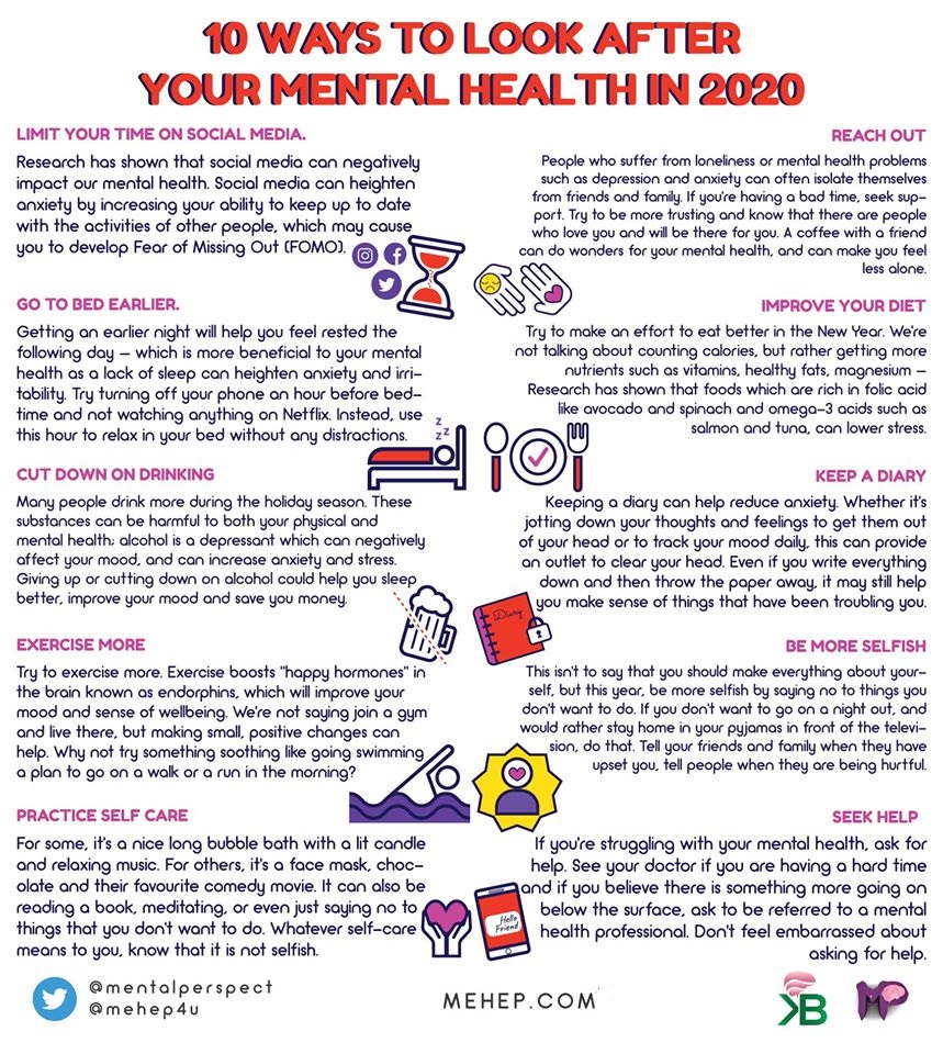 Here are 10 tips that will help you to look after your mental health throughout 2020. I hope that you will find it useful. I am giving you all permission to print this information and put it in your workplace, bedroom, office, school etc. Please share it with others and if you need a poster copy of it, let me know – I will send it to you free of cost. mehep4u@gmail.com.
